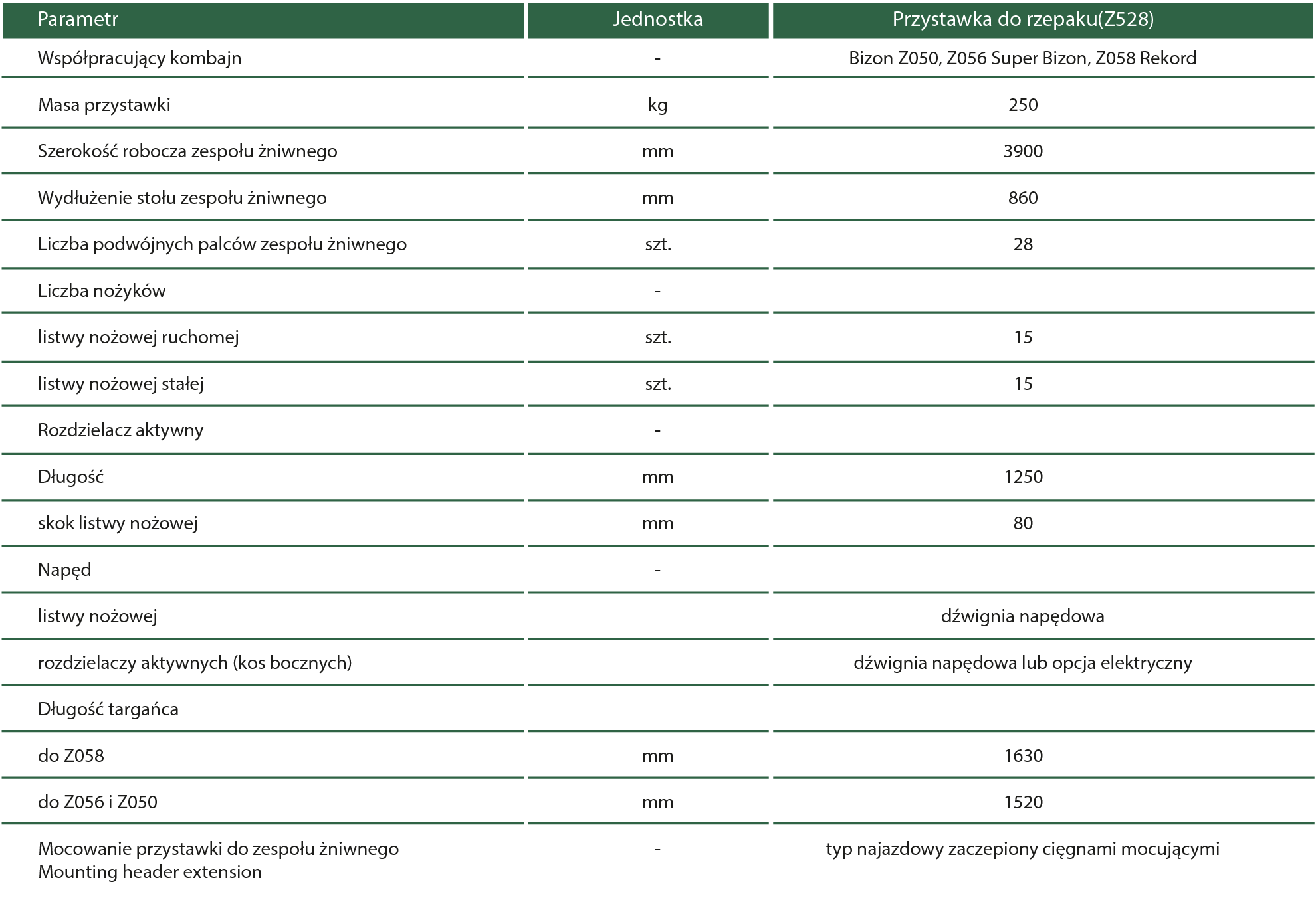 • Przystawka uniwersalna pasuje do kombajnu Bizon Z-056 Super, Bizon Z-058 Rekord, Z-050.